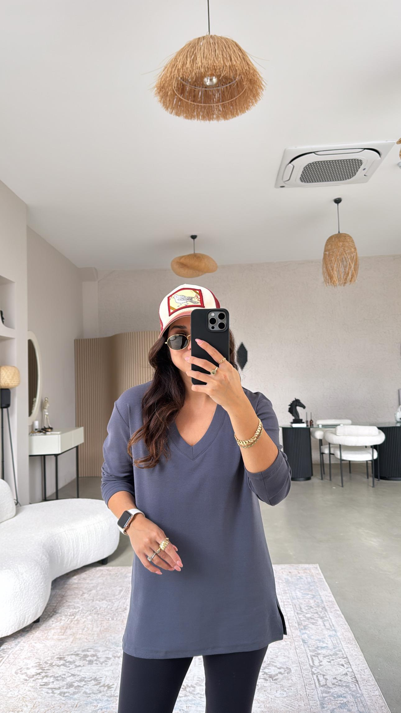 Antrasit V Yaka Uzun Kol Pamuk Basic
