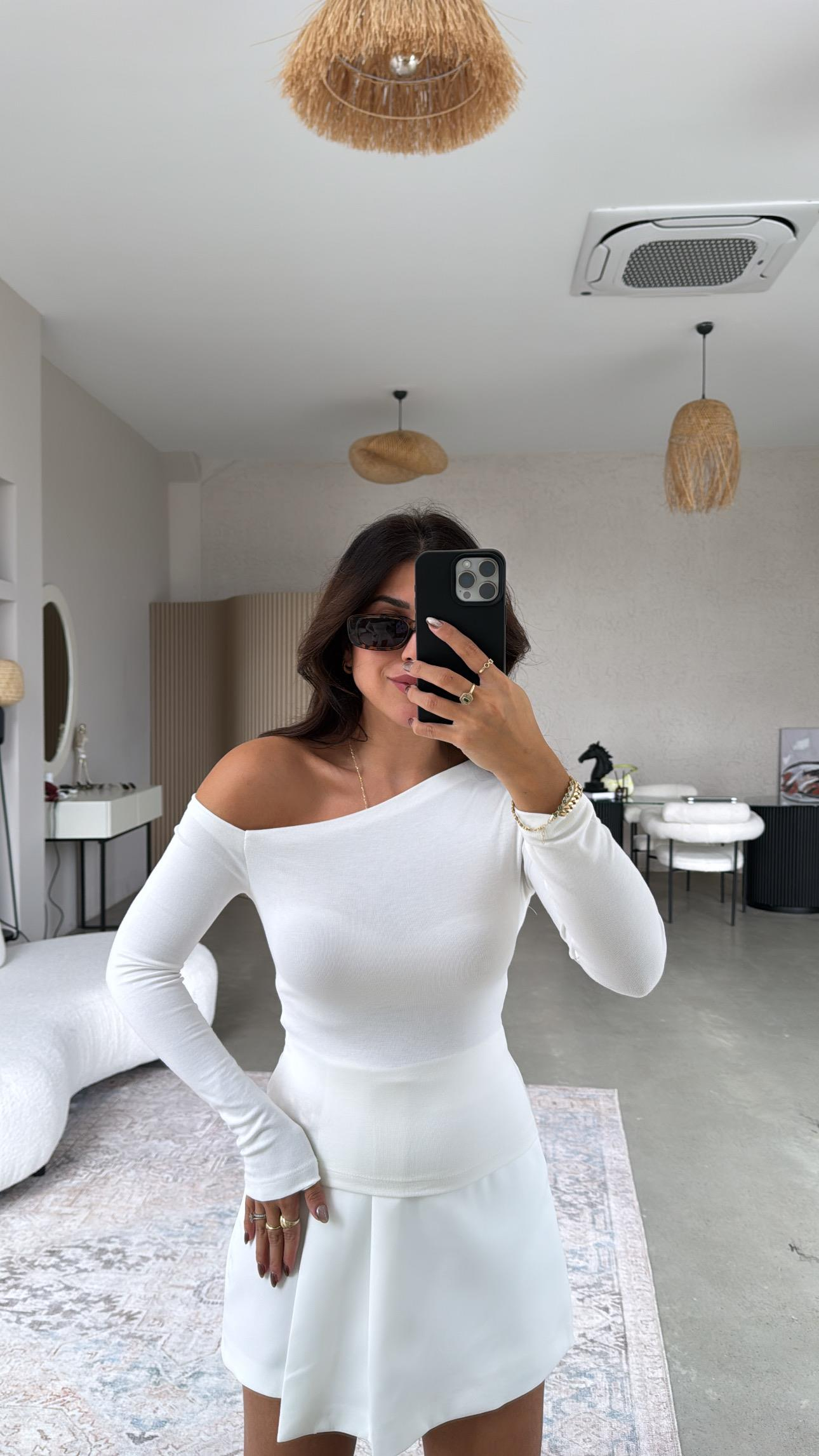 Ekru İthal Modal Kumaş Omzu Açık Bluz