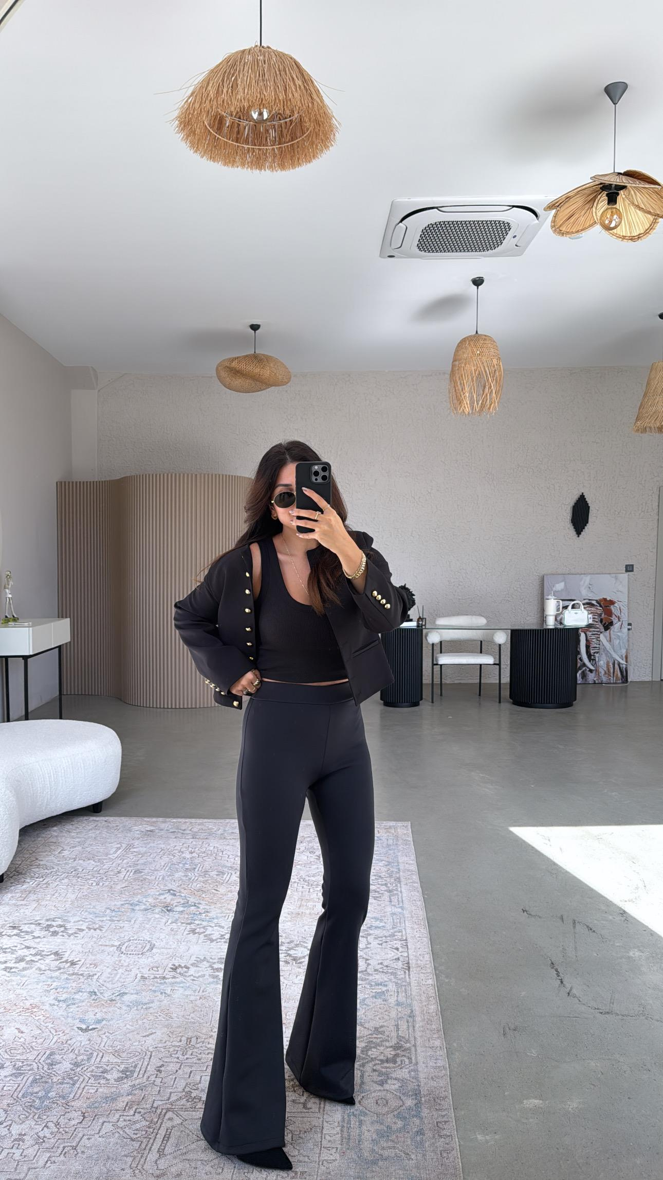Siyah Tok Kumaş Premium İspanyol Tayt Pantolon