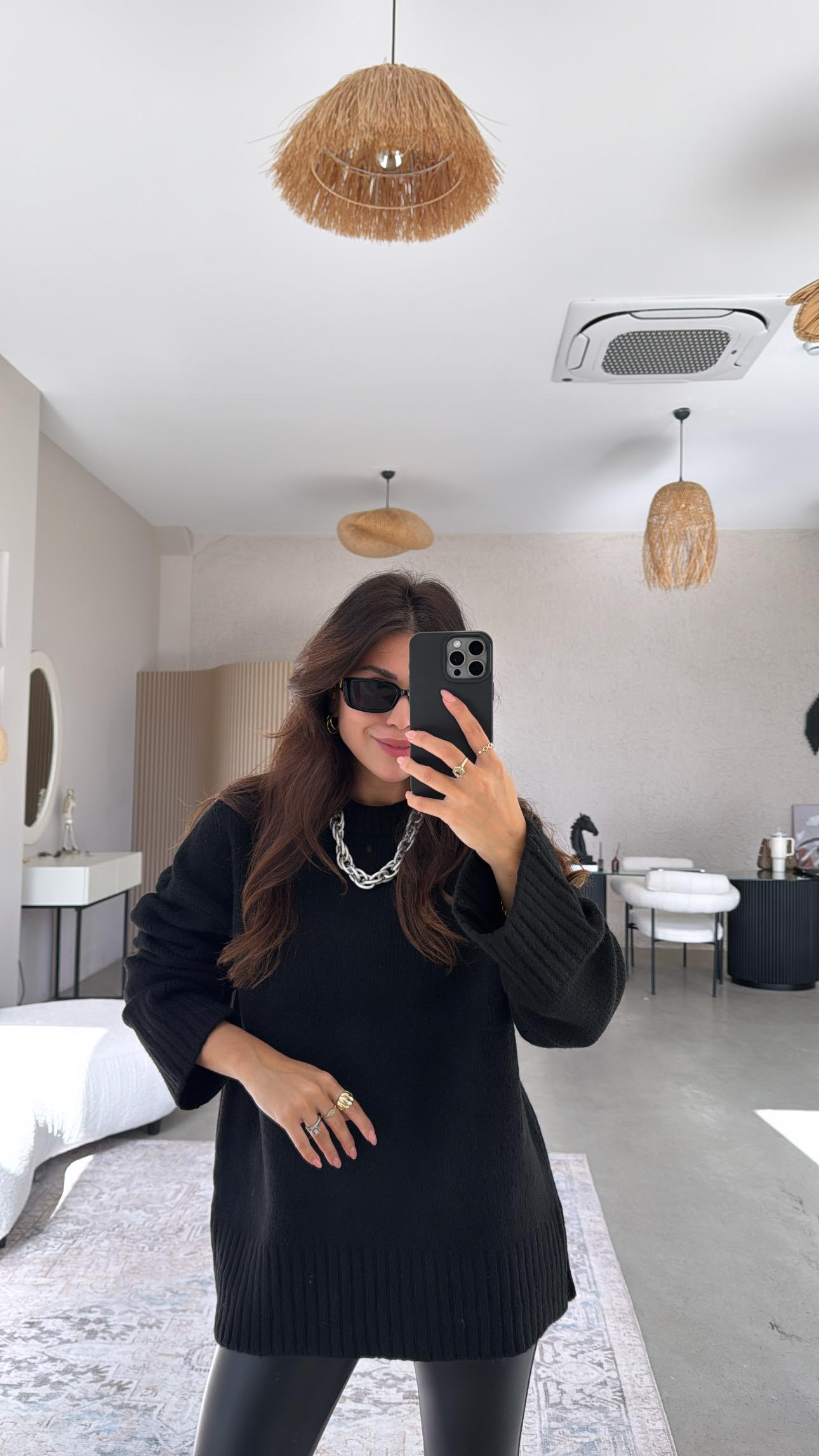 Siyah Yumoş Bisiklet Yaka Basic Kazak