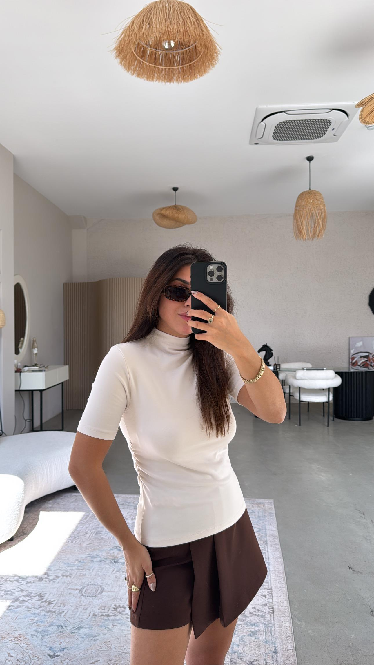 Taş Rengi Dik Yaka Büzgü Detay Modal Basic