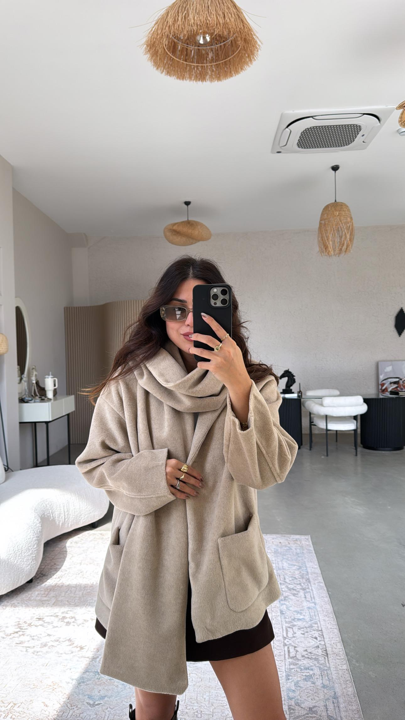 Taş Yumuşak Kaşe Atkı Detay Ceket